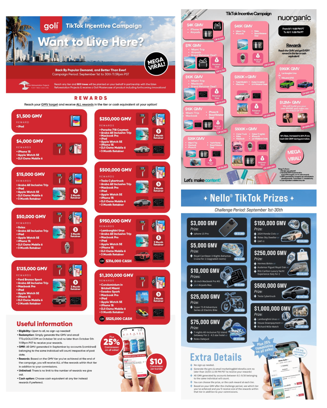 Goli Nutrition, Nuorganic, and Nello are giving away amazing incentives if you reach their target GMV!